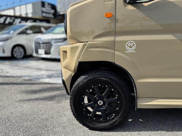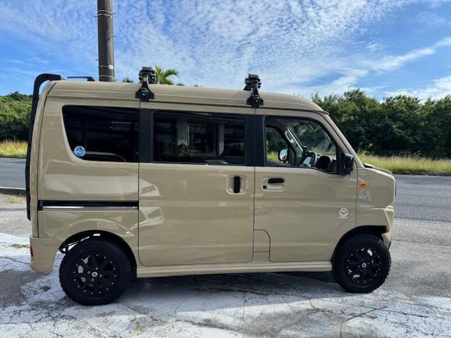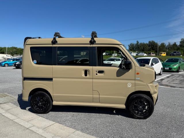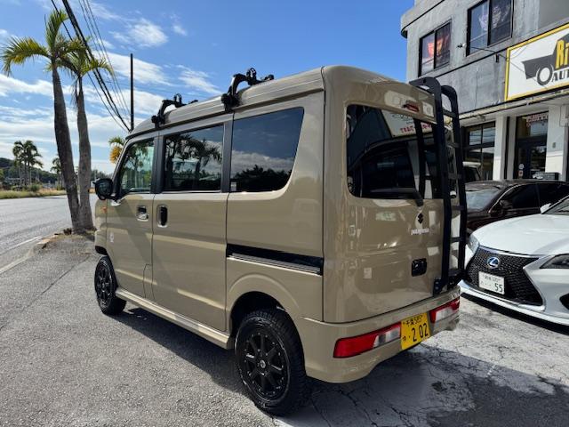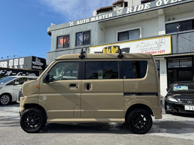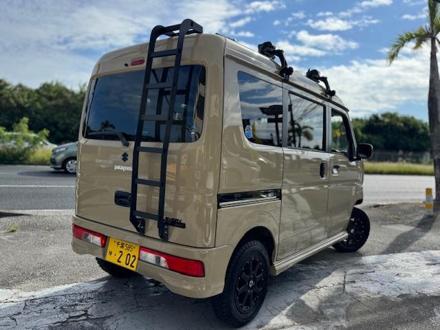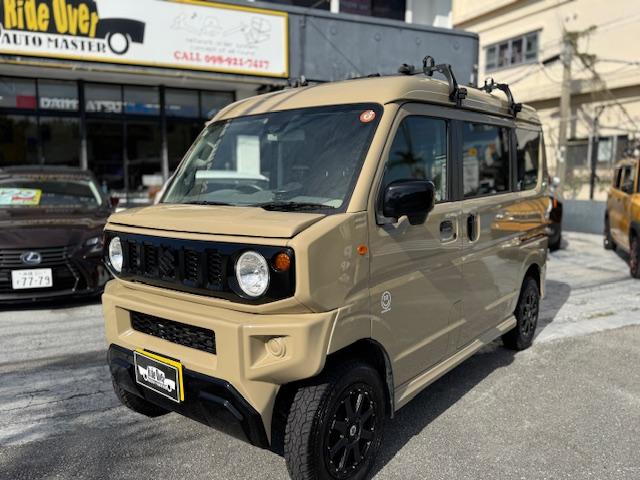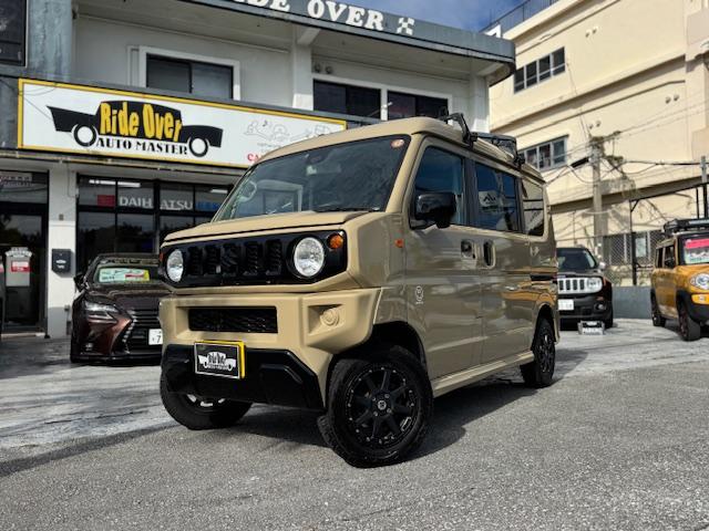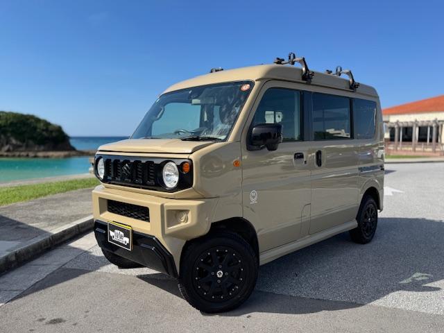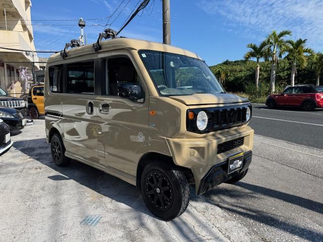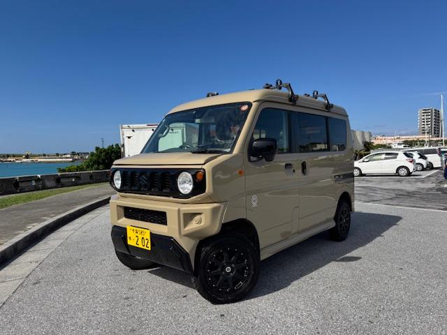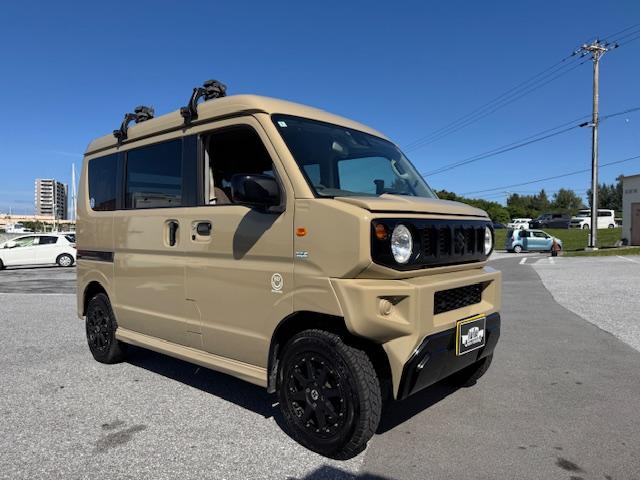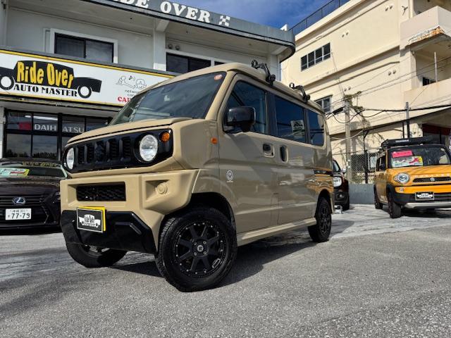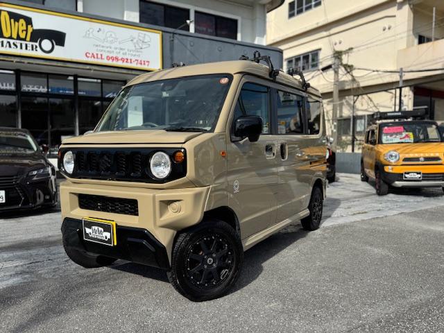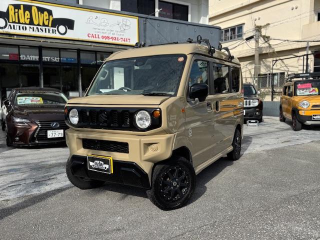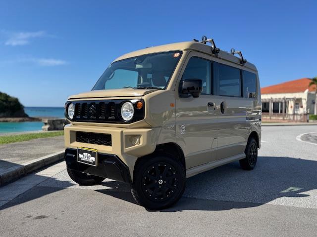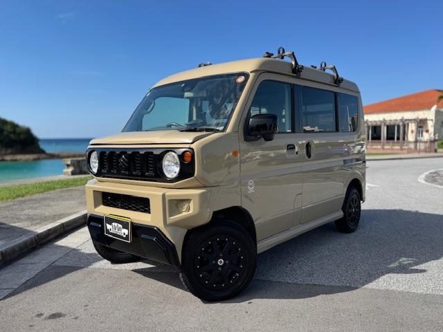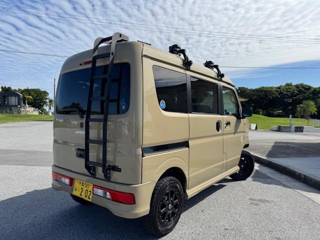 NEW ! スズキ エブリイワゴン JPターボ ジムリィ仕様 社外サンドベージュオールペン済 社外14インチアルミ リフトアップ リアラダー ルーフキャリア 社外Bluetooth内蔵SDナビ 地デジ レーダーブレーキサポート プッシュスタート
