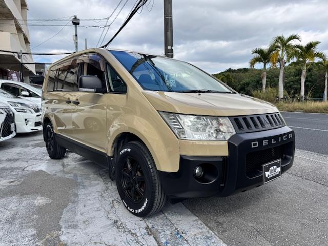 NEW ! 三菱 デリカD:5 M ワンオーナー サンドベージュオールペン済 パワースライドドア Fバンパープロテクター TOYOホワイトレタータイヤ Bluetooth内蔵SDナビ バックモニター ドラレコ HIDヘッドライト ETC