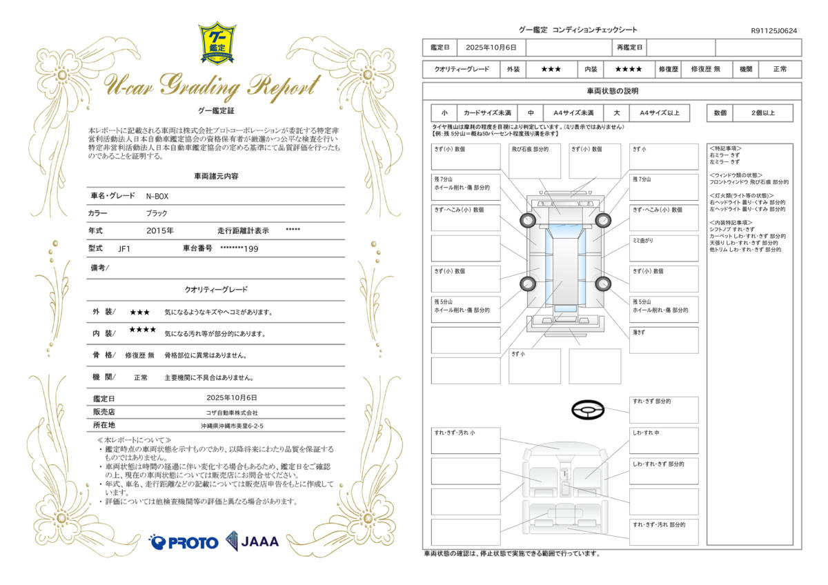 - ※実際にお渡しするコンディションチェックシートにつきましては、形式および表示項目が異なる場合がございます。