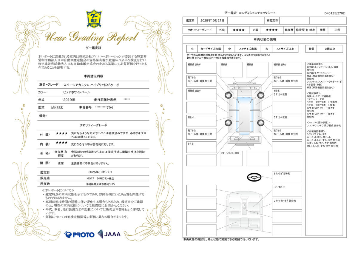 - ※実際にお渡しするコンディションチェックシートにつきましては、形式および表示項目が異なる場合がございます。
