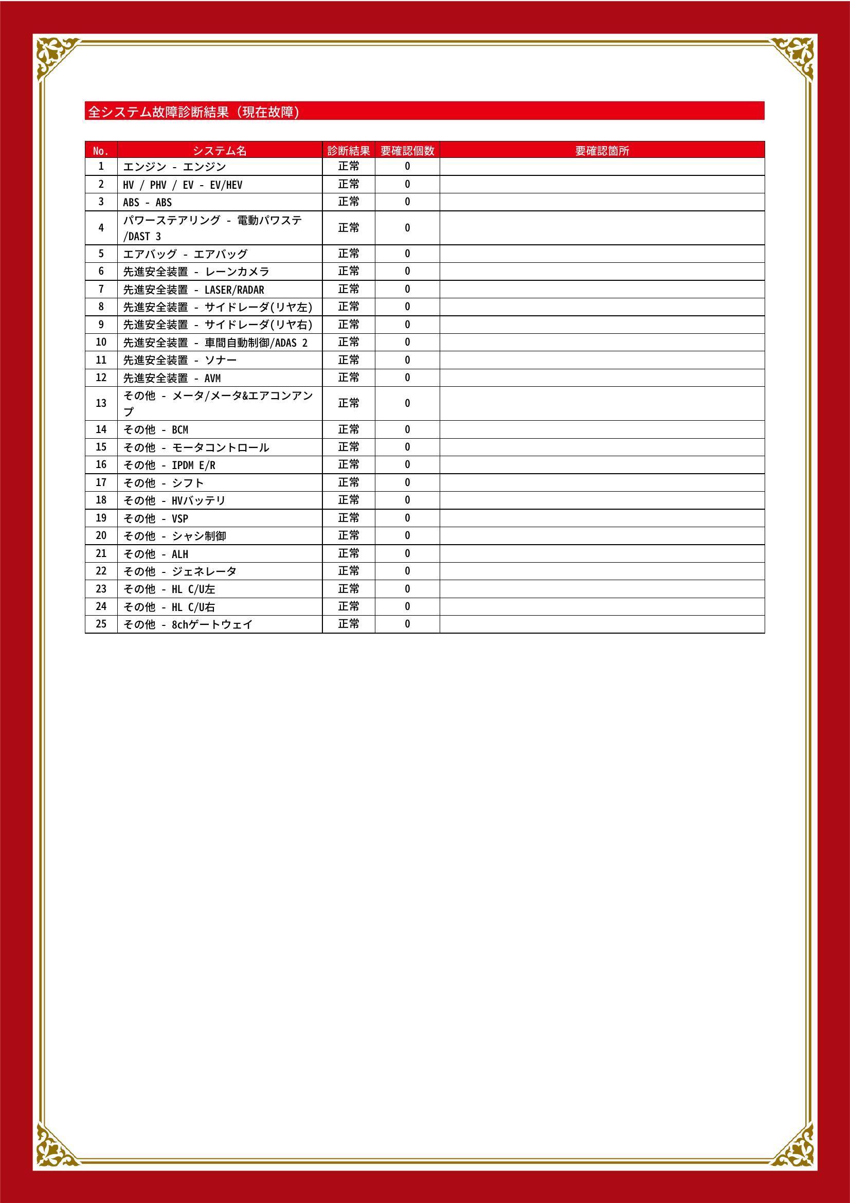 - ※実際にお渡しするコンディションチェックシートにつきましては、形式および表示項目が異なる場合がございます。
