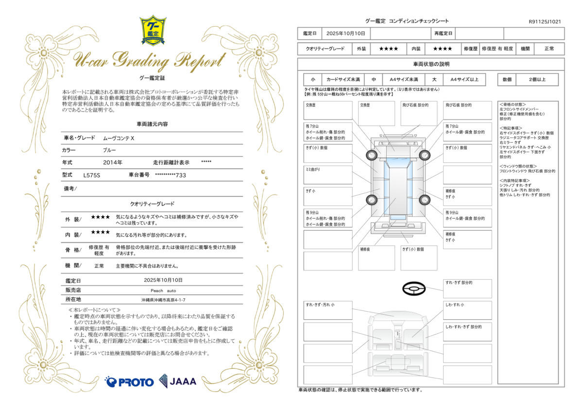 - ※実際にお渡しするコンディションチェックシートにつきましては、形式および表示項目が異なる場合がございます。
