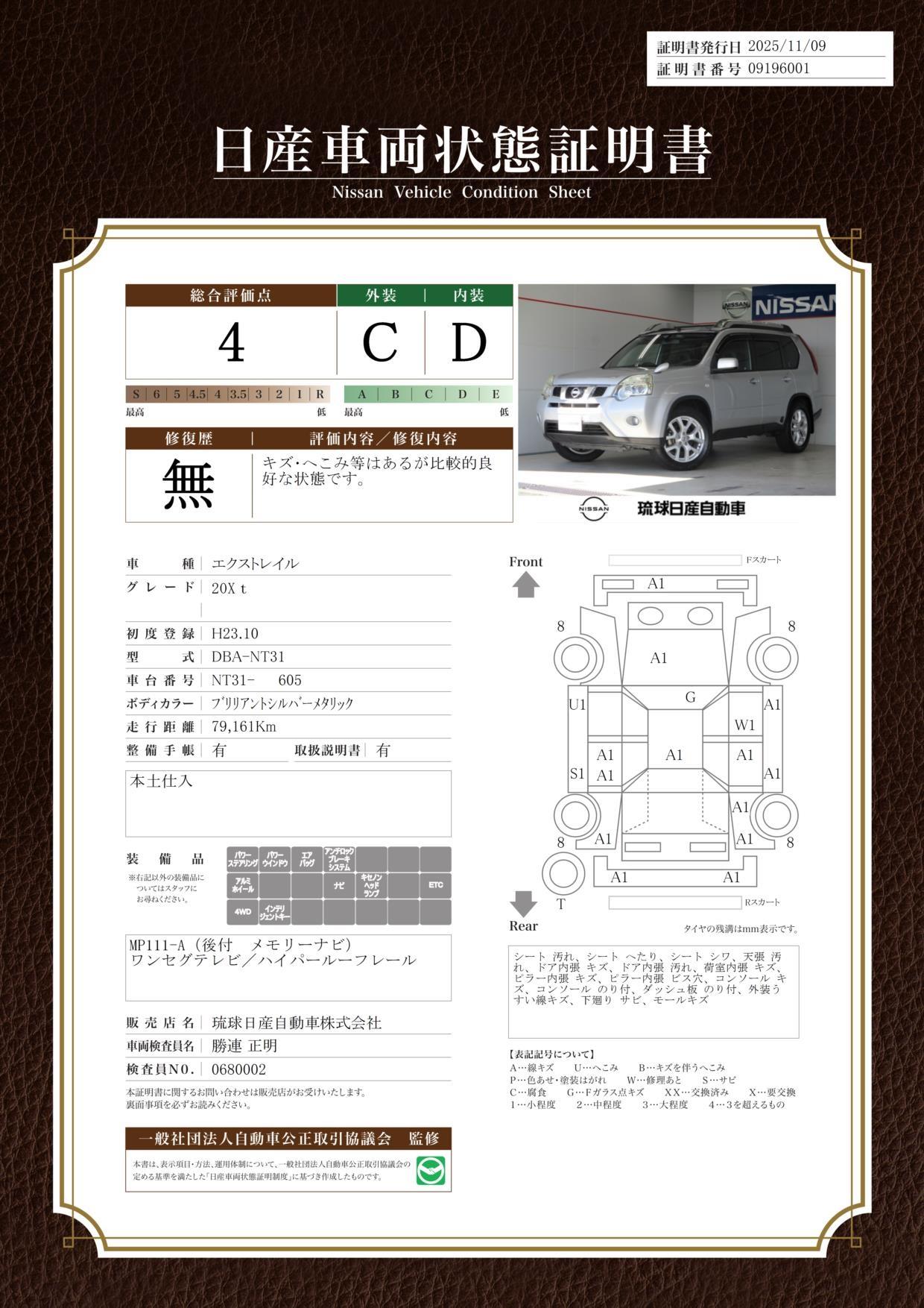 車両状態評価書