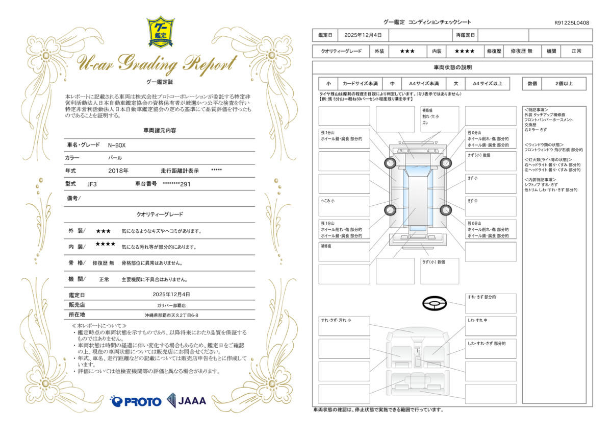 - ※実際にお渡しするコンディションチェックシートにつきましては、形式および表示項目が異なる場合がございます。
