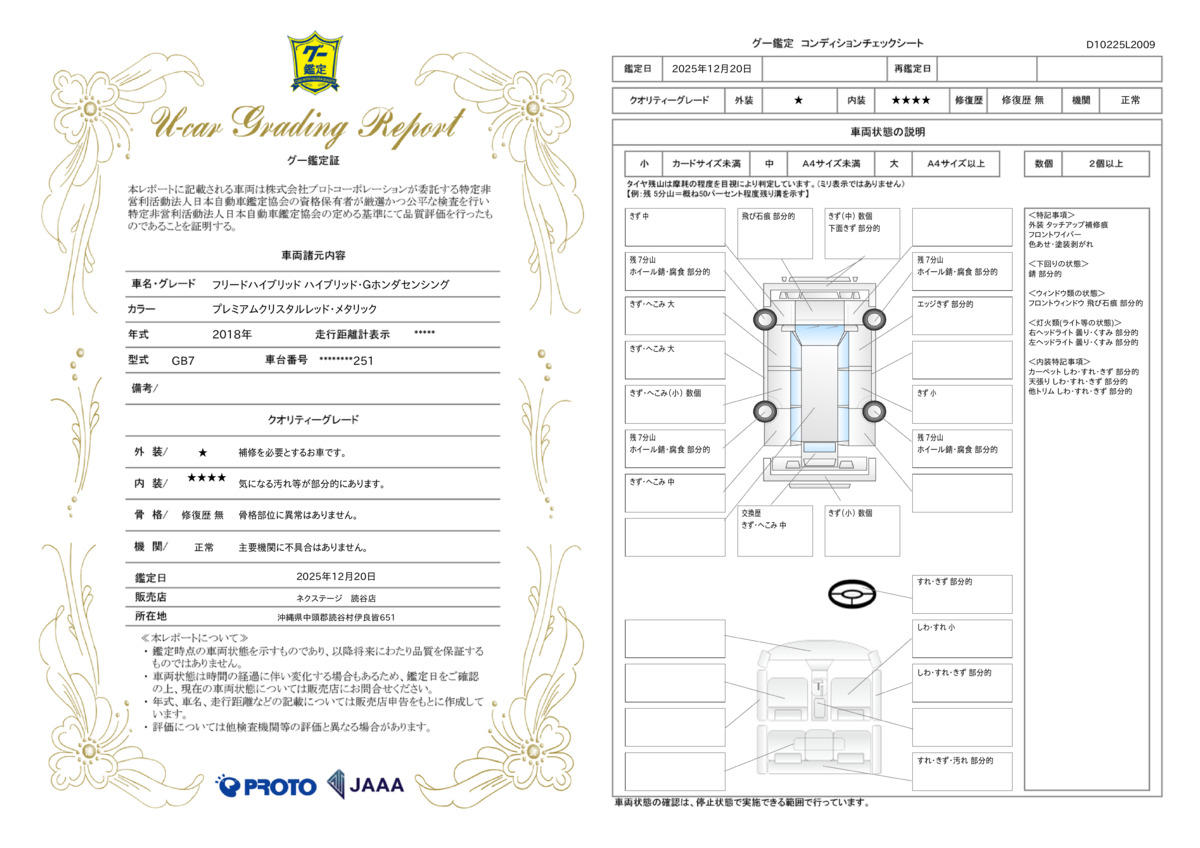 - ※実際にお渡しするコンディションチェックシートにつきましては、形式および表示項目が異なる場合がございます。