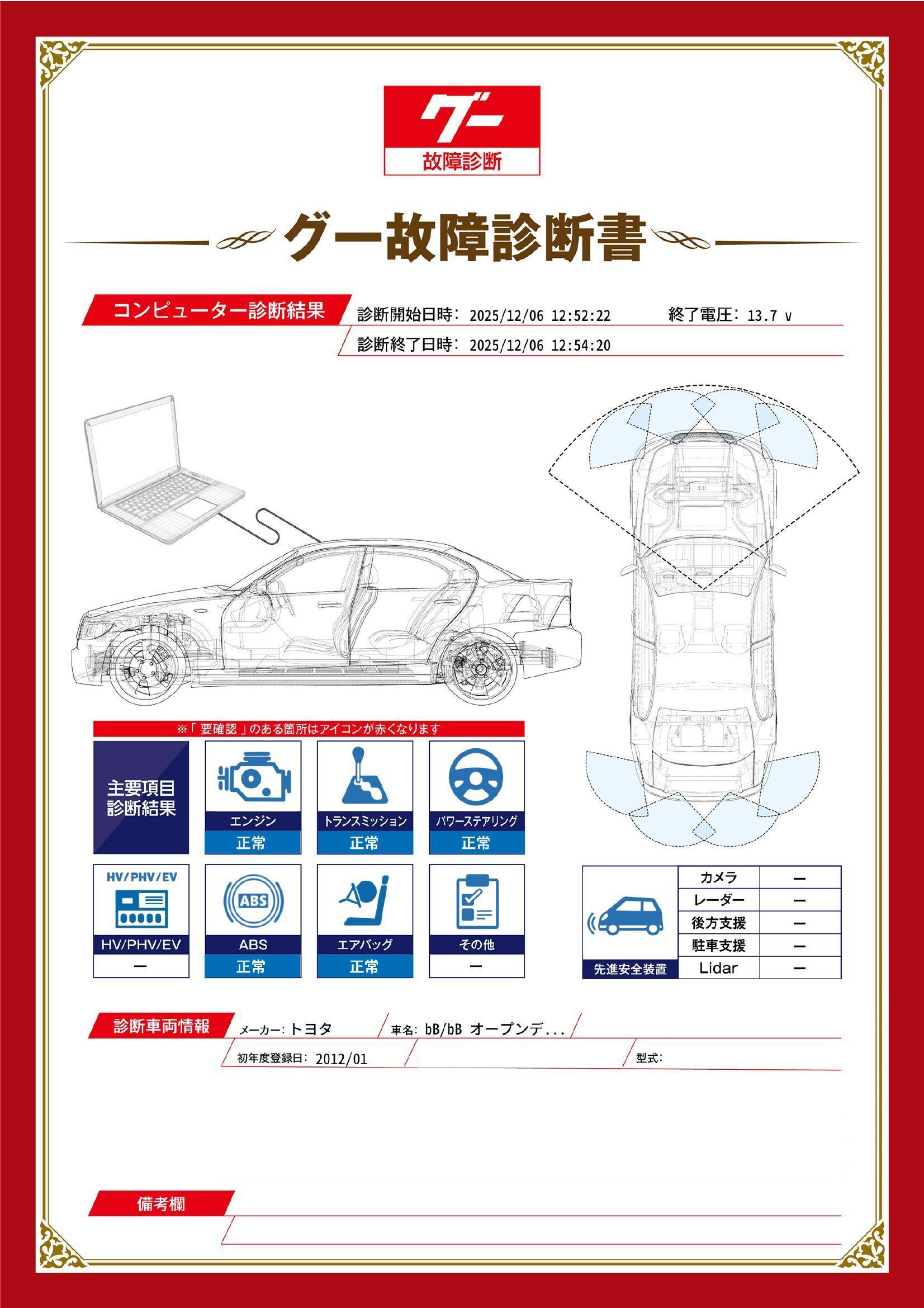 - ※グー故障診断書はあくまでも実施時点での診断結果となります。