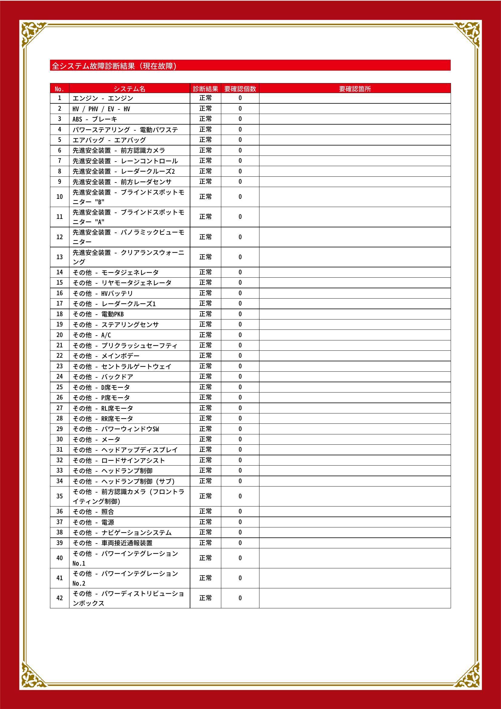 - ※異常がある場合は主要点検項目が赤色になり、要確認と表記されます。