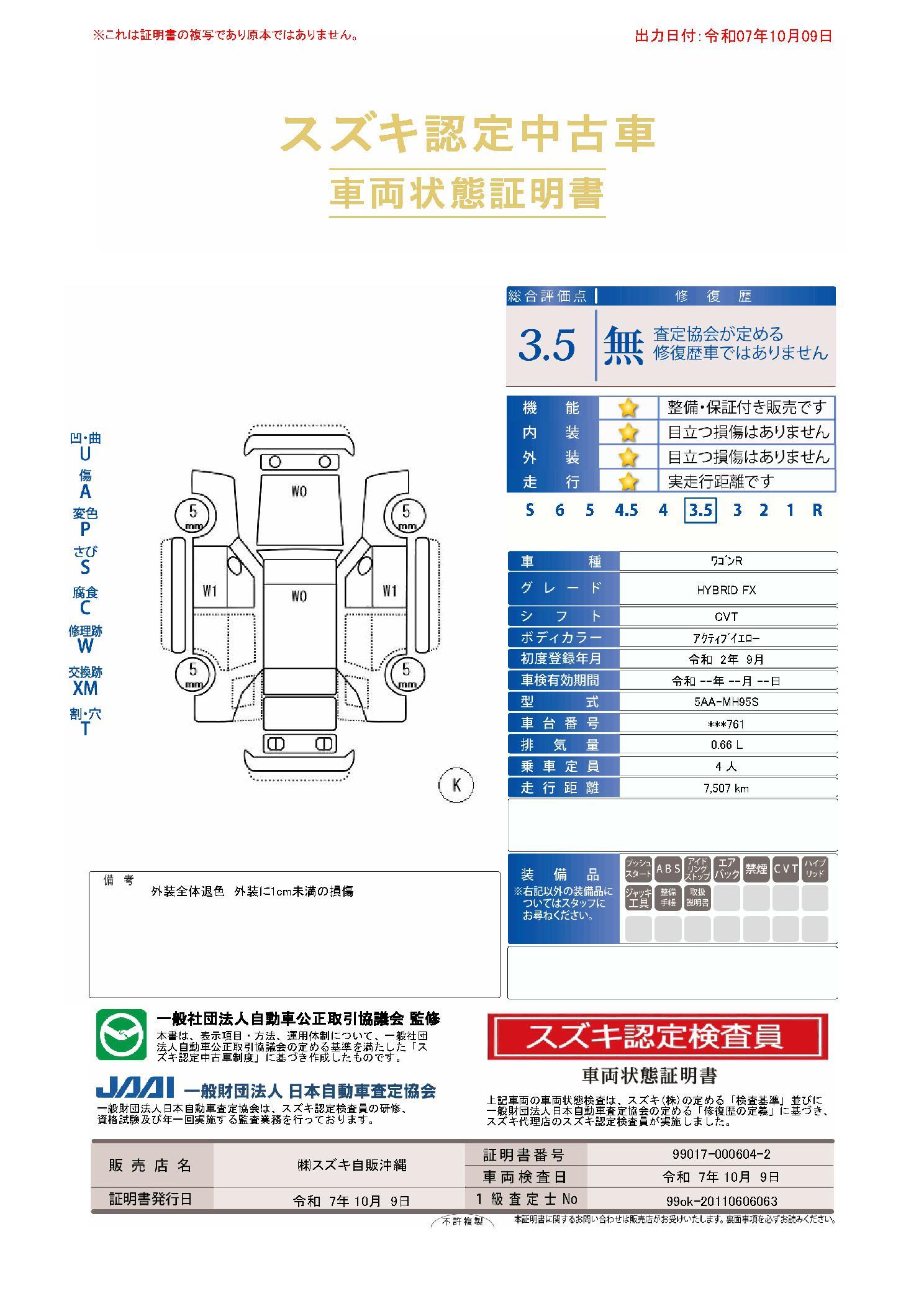 車両状態評価書