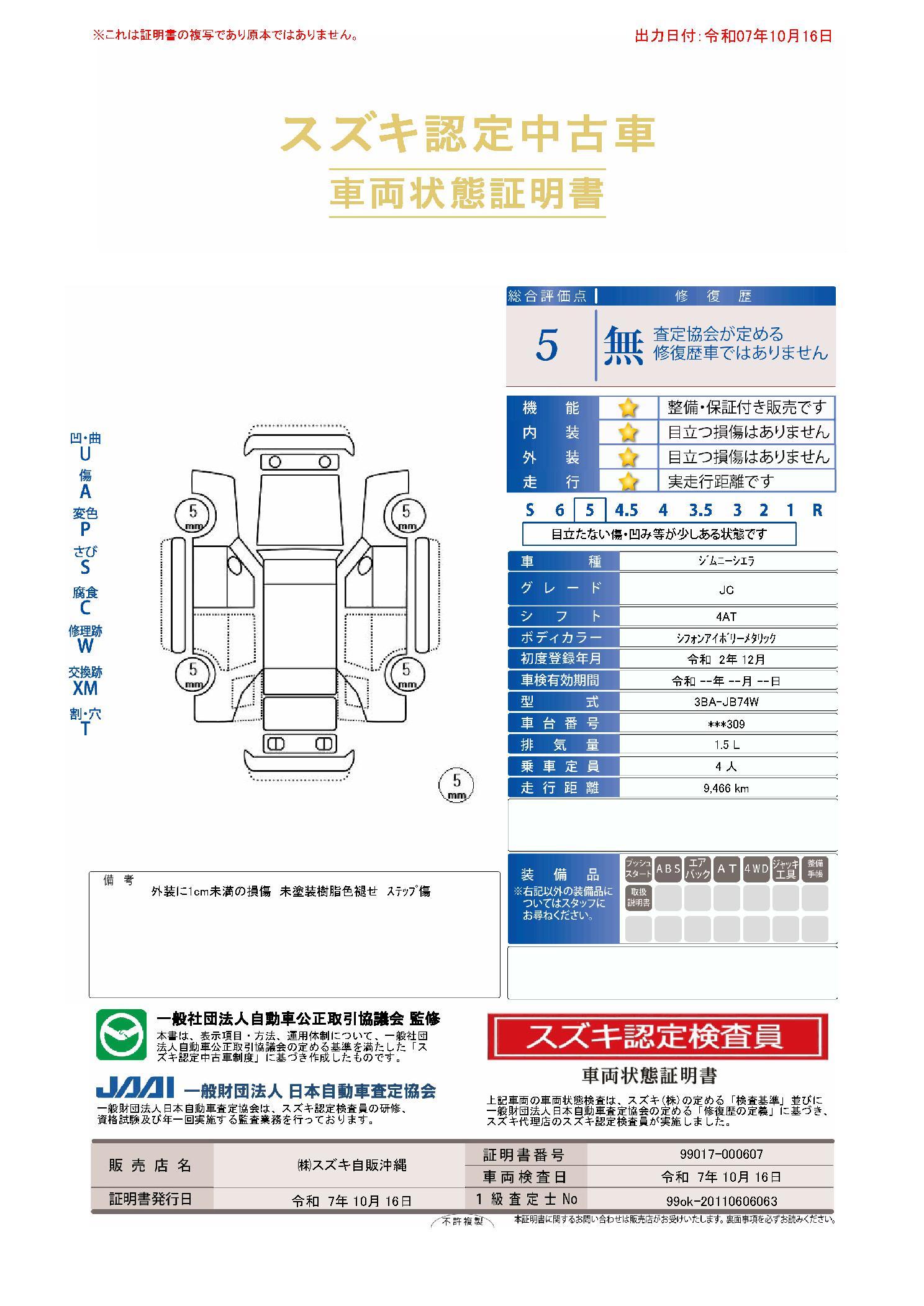車両状態評価書