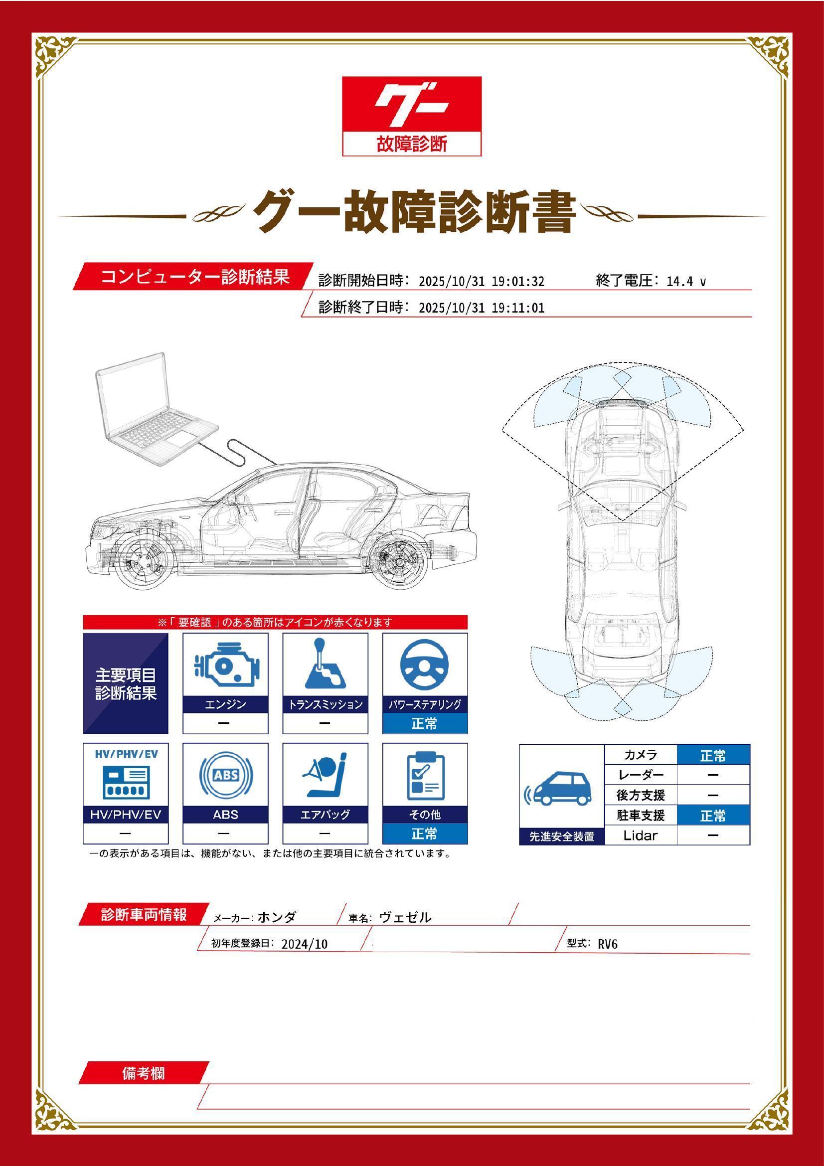 - ※グー故障診断書はあくまでも実施時点での診断結果となります。