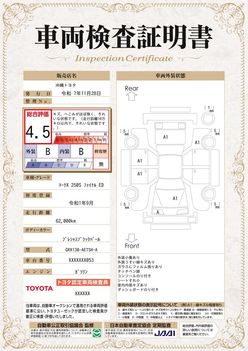 NEW ! トヨタ マークX 250S ファイナルエディション フルセグ メモリーナビ DVD再生 ミュージックプレイヤー接続可 バックカメラ 衝突被害軽減システム ETC ドラレコ LEDヘッドランプ 記録簿
