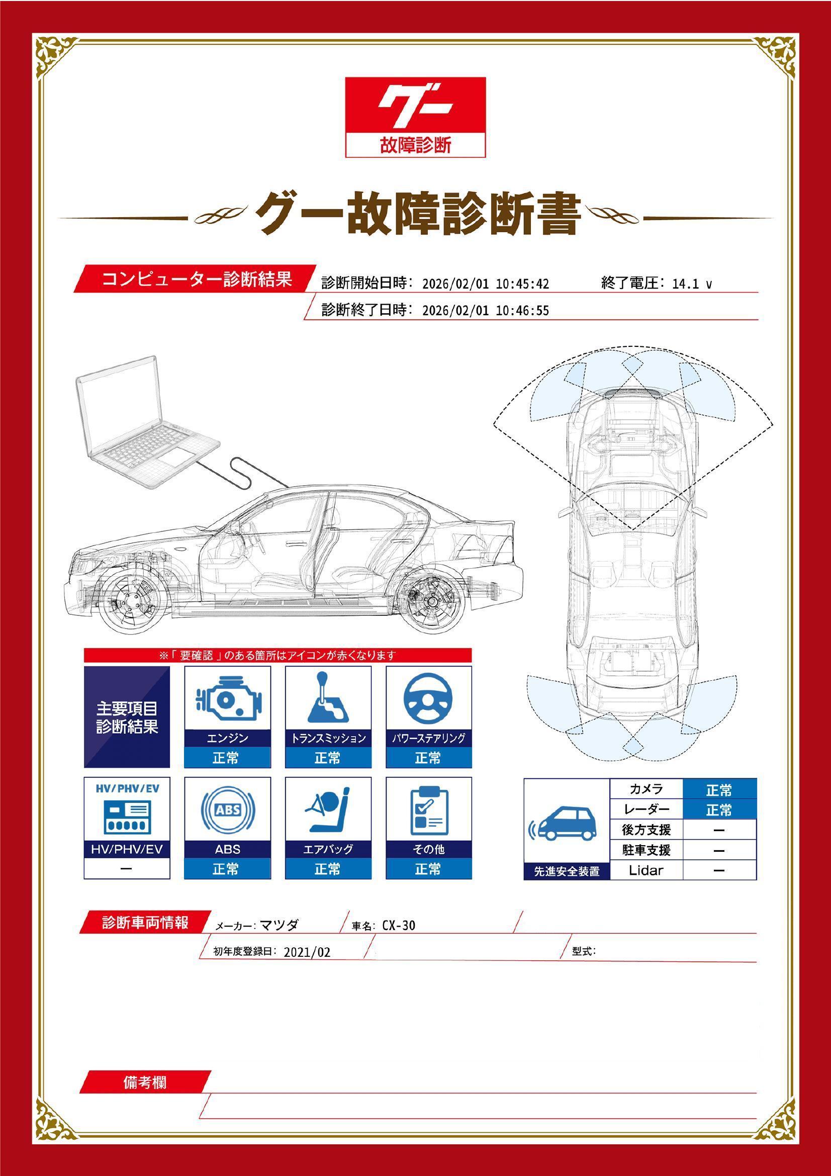- ※グー故障診断書はあくまでも実施時点での診断結果となります。